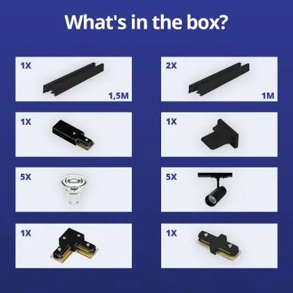 Complete Set 1-Phase Rail L 1,5 x 2 Meter Black | incl. 5x Spot + GU10 2700K 3W Dimmable + End Cap, Power Connector and L -Connector