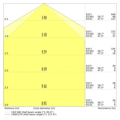 The colour code is a combination of colour rendering (CRI) and light colour (Kelvin). The first number indicates the colour rendering (1 = very poor colour rendering, 9 = maximum colour fastness). The second and third number contains the light colour. Example: the colour code 830 consists of good colour rendering (8) and warm white light (3000K). |