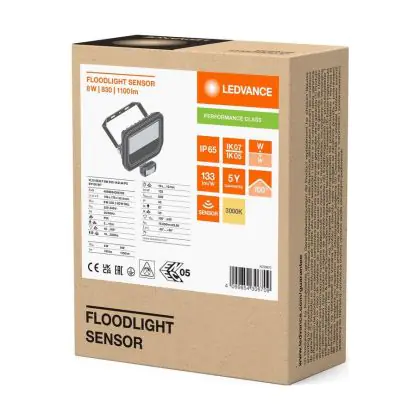 Ledvance LED Floodlight Aluminium White 8W 1100lm 100D - 830 Warm White | IP65 - Motion And Light Sensor - Symmetrical