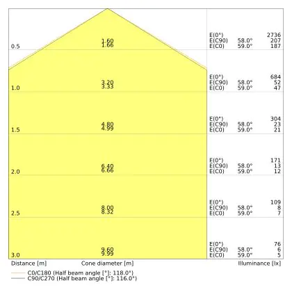 The colour code is a combination of colour rendering (CRI) and light colour (Kelvin). The first number indicates the colour rendering (1 = very poor colour rendering, 9 = maximum colour fastness). The second and third number contains the light colour. Example: the colour code 830 consists of good colour rendering (8) and warm white light (3000K). |