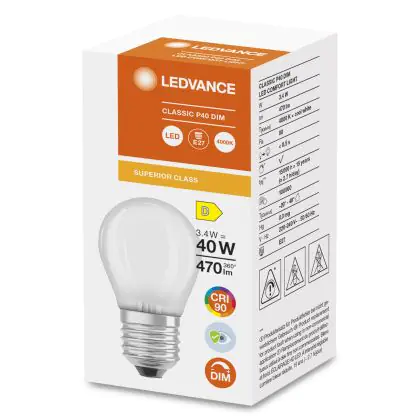 Ledvance Superior Classic LED E27 Ball Frosted 3.4W 470lm - 940 Cool White | Dimmable - Best Colour Rendering