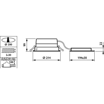 Philips LED Downlight LuxSpace Compact Low Height DN570B 16.5W 2200lm 80D - 830 Warm White | 214mm - Dimmable - Aluminium Reflector - Power Over Ethernet