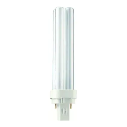Philips PL-C 2P are compact fluorescent lamps with separate power supplies. They are energy efficient lamps with a 2 pin socket. They run on an electromagnetic control equipment. With their G24d-2 socket, Philips PL-C 18W 830 2P easily integrate into light fixtures.