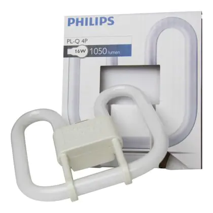 Philips PL-Q 4P lamps are 2D type florescent lamps, very energy efficient with a quadrant shape. The Philips PL-Q 4P range is compatible with electronic ballast. Philips PL-Q 16W 835 4P measure 137 cm and have a GR10q socket type, which corresponds to a socket with 4 pins.