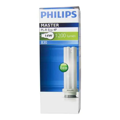 Philips PL-R Eco 14W 830 4P will provide a warm and inviting light, corresponding to a colour temperature of 3000K. Philips PL-R Eco 14W 830 4P are very energy efficient: their energy label is classified A. Philips PL-R Eco 14W 830 4P lamps also have a very long lifespan, 24000 hours on average!